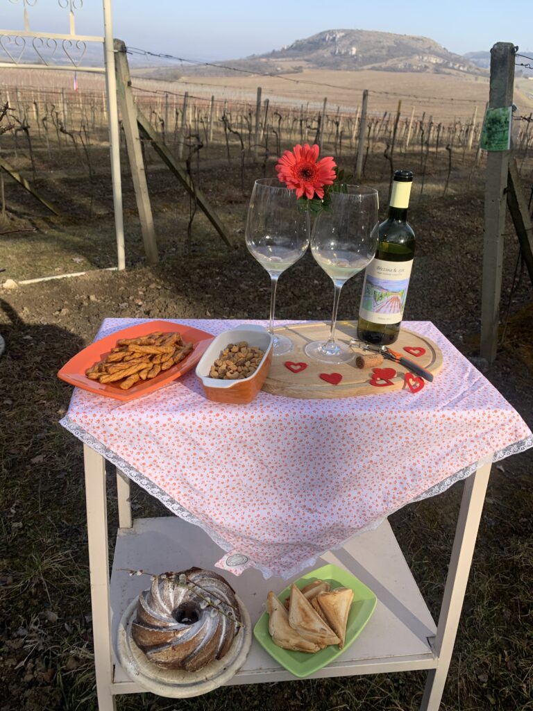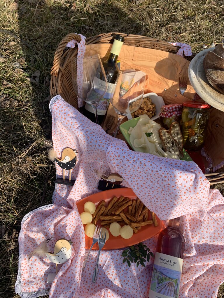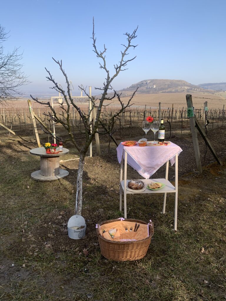 …v neděli se vylouplo pro naše zákazníky nádherné ráno. A proč ne? Objednali si totiž romantickou snídani přímo do vinohradu…